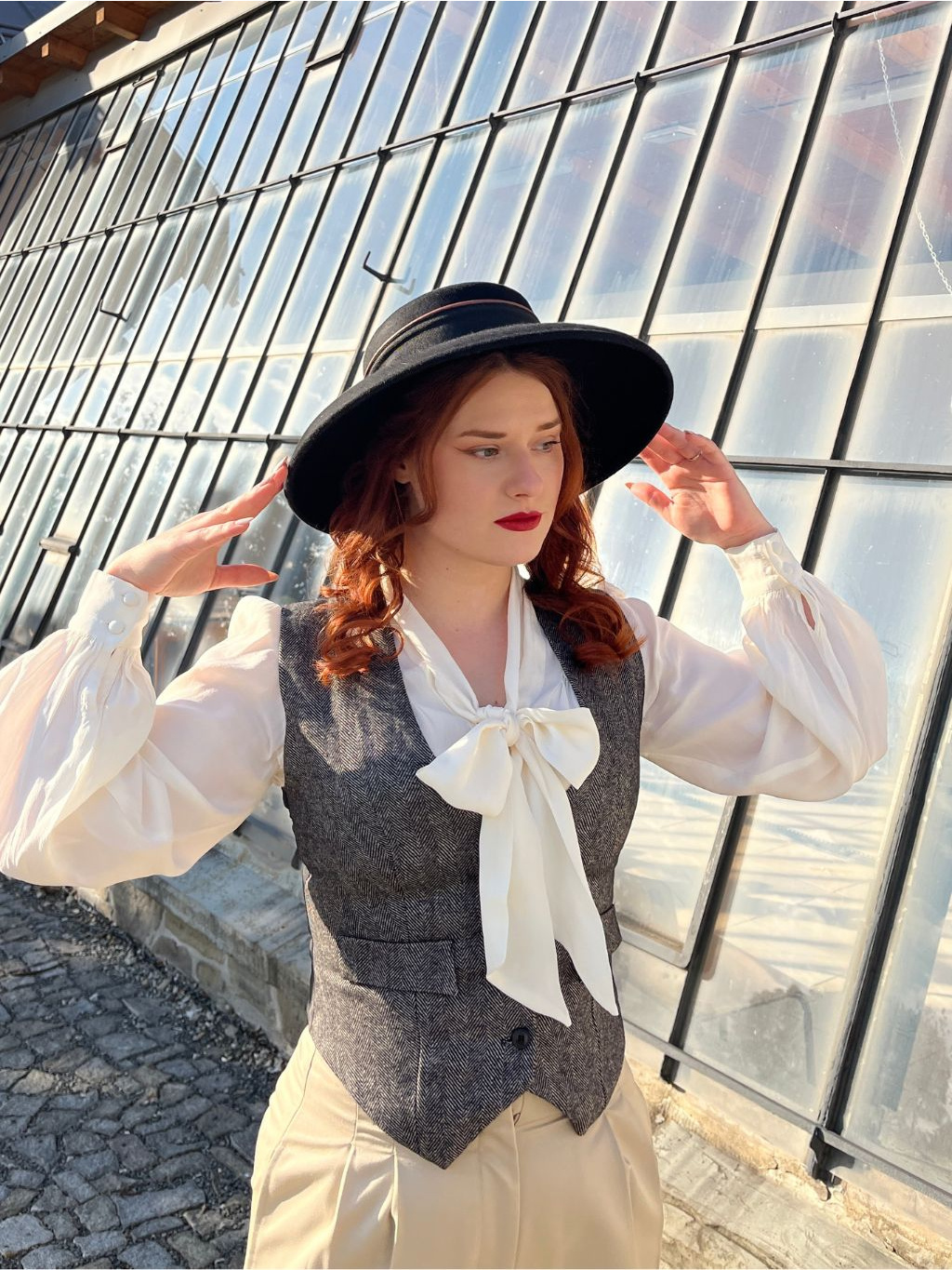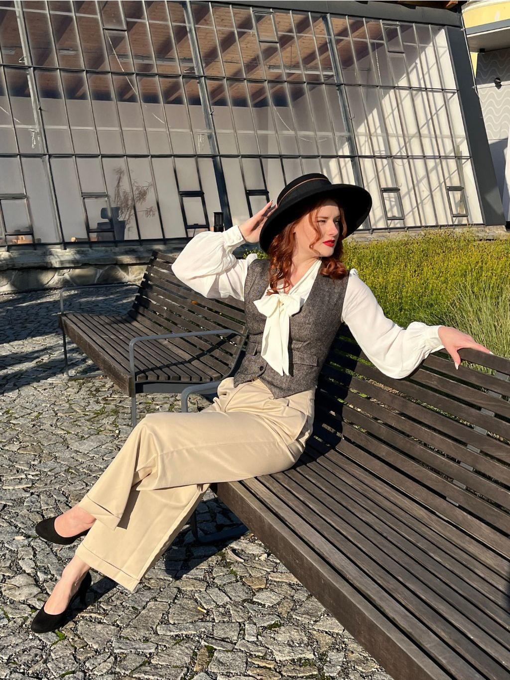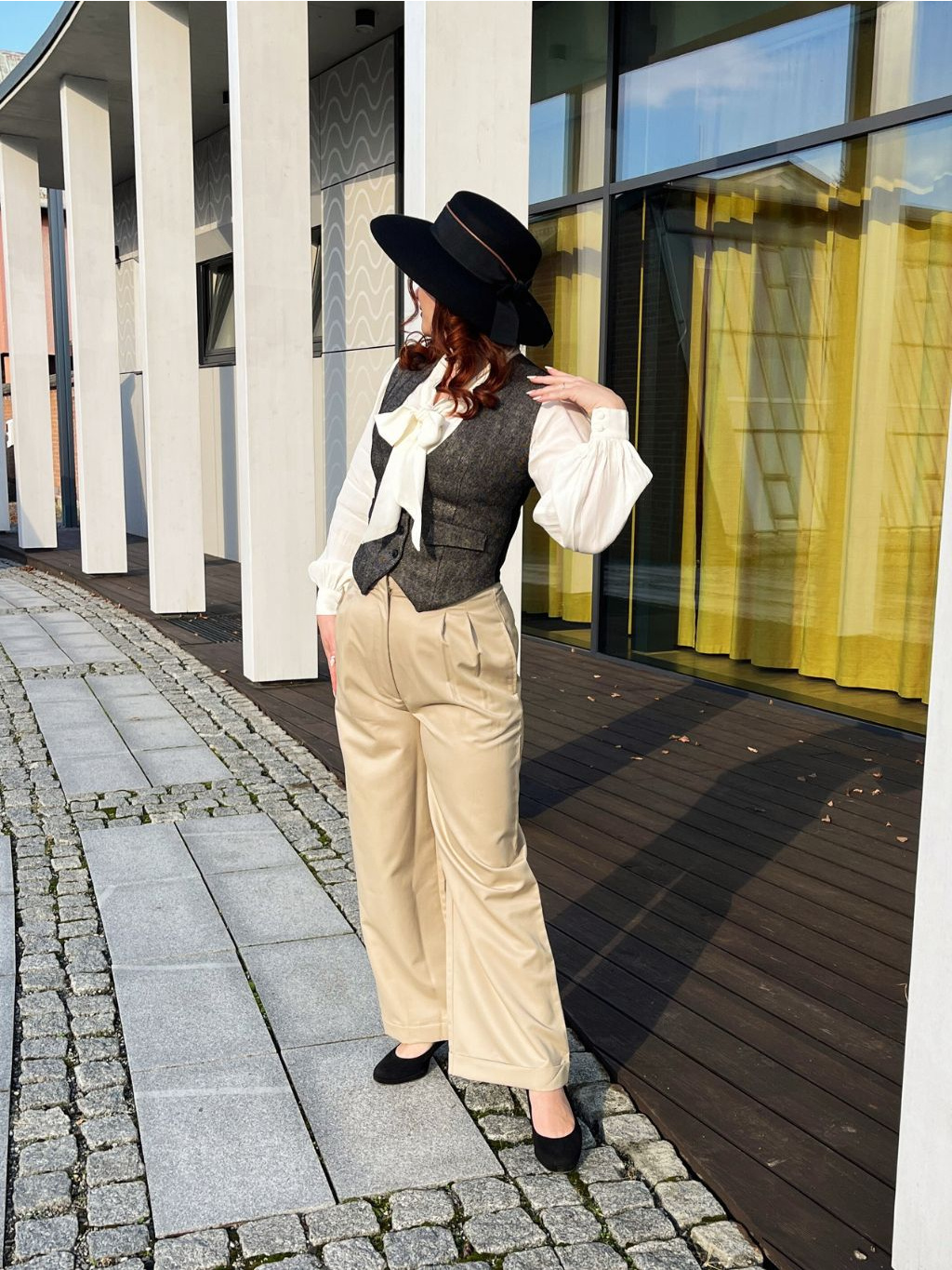 Vesta je perfektním doplňkem, když máte pocit, že outfitu „něco chybí“. Skvěle ji zkombinujete s jednou z teplých vlněných sukní z mé nabídky nebo s elegantními širokými kalhotami.