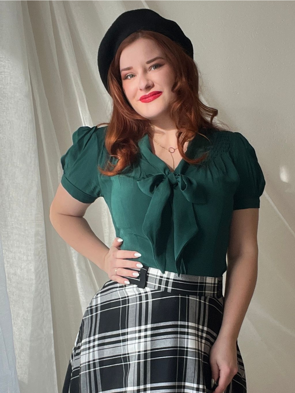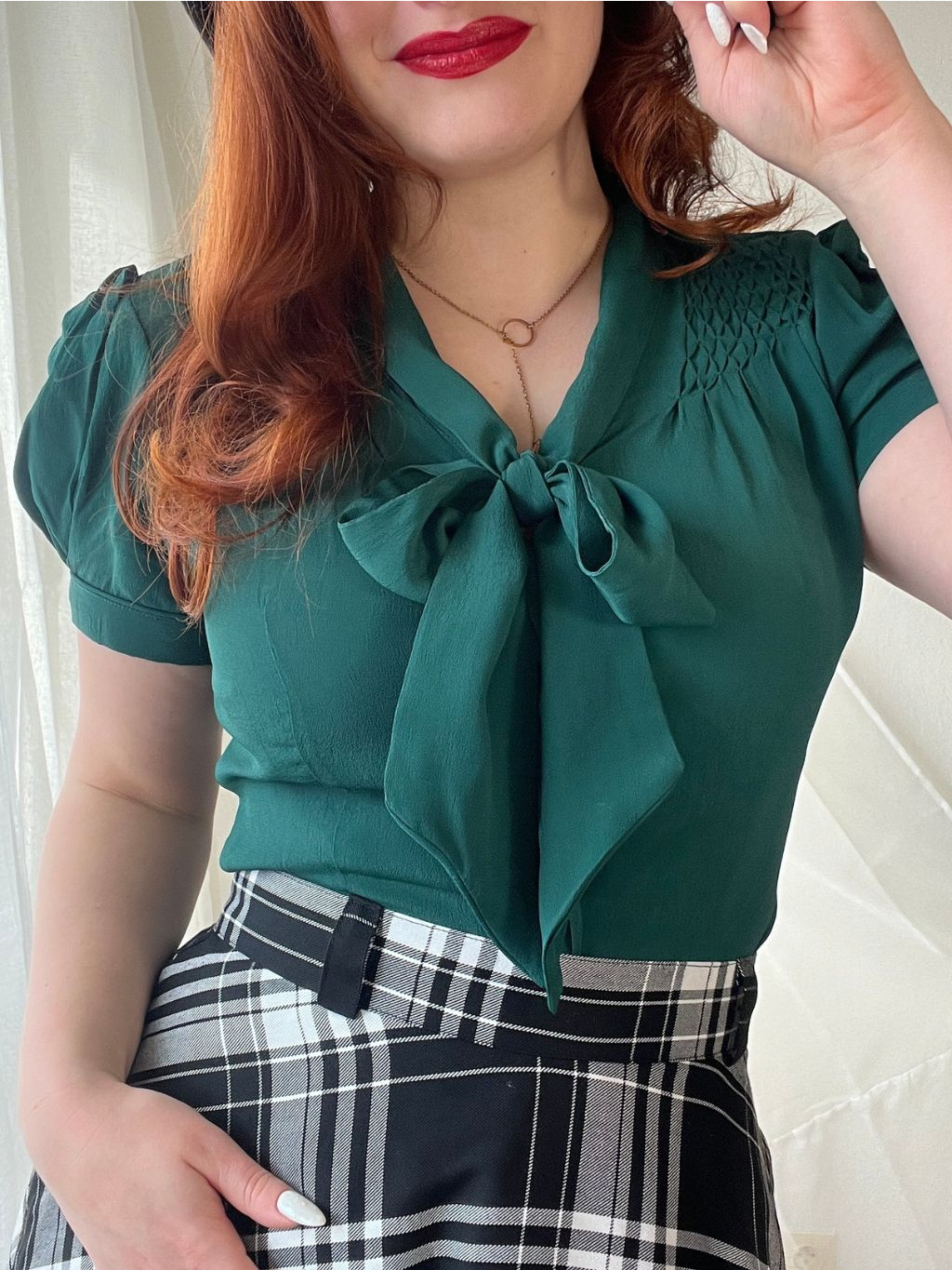 Skvělý basic kousek, po kterém sáhnete ve chvíli, kdy nevíte, co na sebe. Halenka má klasický střih, který bude slušet každé ženě. Perfektní k sukním i kalhotám. V zimě doplňte vestičkou nebo třeba kardiganem z mé nabídky. V tomto krásném zeleném odstínu bude skvělá i na Vánoce v kombinaci s červenou.