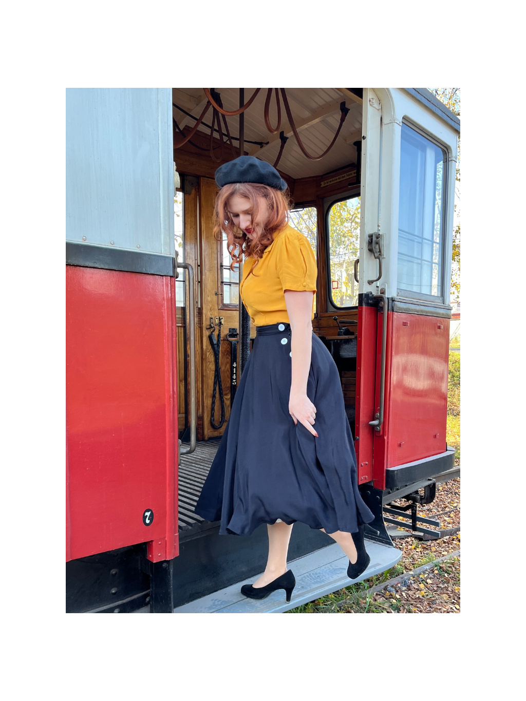 Czarująca spódnica kołowa uszyta według kroju z przełomu lat 40. i 50. Czy znasz lepsze uczucie niż zakręcenie się w kołowej spódnicy? Podstawowy element w ponadczasowej czerni powinien znaleźć się w garderobie każdej eleganckiej kobiety. Uzupełnij ją jedną z halek z mojej oferty, a spódnica natychmiast zyska zupełnie nowy poziom. Przeczytaj więcej o spódnicy Isabelle w opisie poniżej.
