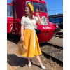 Czarująca spódnica rozkloszowana uszyta według kroju z przełomu lat 40. i 50. Czy jest lepsze uczucie niż zakręcenie się w rozkloszowanej spódnicy? Podstawowy element w jaskrawej żółtej kolorystyce powinien znaleźć się w szafie każdej eleganckiej kobiety, która kocha kolory. Uzupełnij ją jedną z halka z mojej oferty, a spódnica od razu zyska zupełnie nowy poziom. Szczegóły dotyczące spódnicy Isabelle znajdziesz w opisie poniżej.