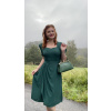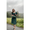 Czarująca sukienka niczym wycięta z srebrzystej tkaniny lat 40. XX wieku. Krój jest jednak niezwykle korzystny i noszalny także dziś. Dekolt w kształcie serca uzupełniony jest delikatnym marszczeniem po bokach, na ramionach znajdują się cienkie poduszki (łatwe do odpięcia) dla prawdziwego vintage looku. Rękawy są typowo bufiaste. Zapięcie sukienki stanowi guzik przy szyi oraz dekolt w kształcie kropli, do którego dopinany jest ukryty zamek błyskawiczny. Krój sukienki jest dopasowany szerokim pasem materiału, który tworzy sylwetkę klepsydry. Na stałe przyszyta kopertowa spódnica z doskonale eleganckim marszczeniem ukryje nawet większy brzuszek i idealnie dopasuje się do każdego typu figury. W spódnicy wszyte są również ukryte kieszenie, które sprawiają, że ten model jest nie tylko elegancki, ale i praktyczny.