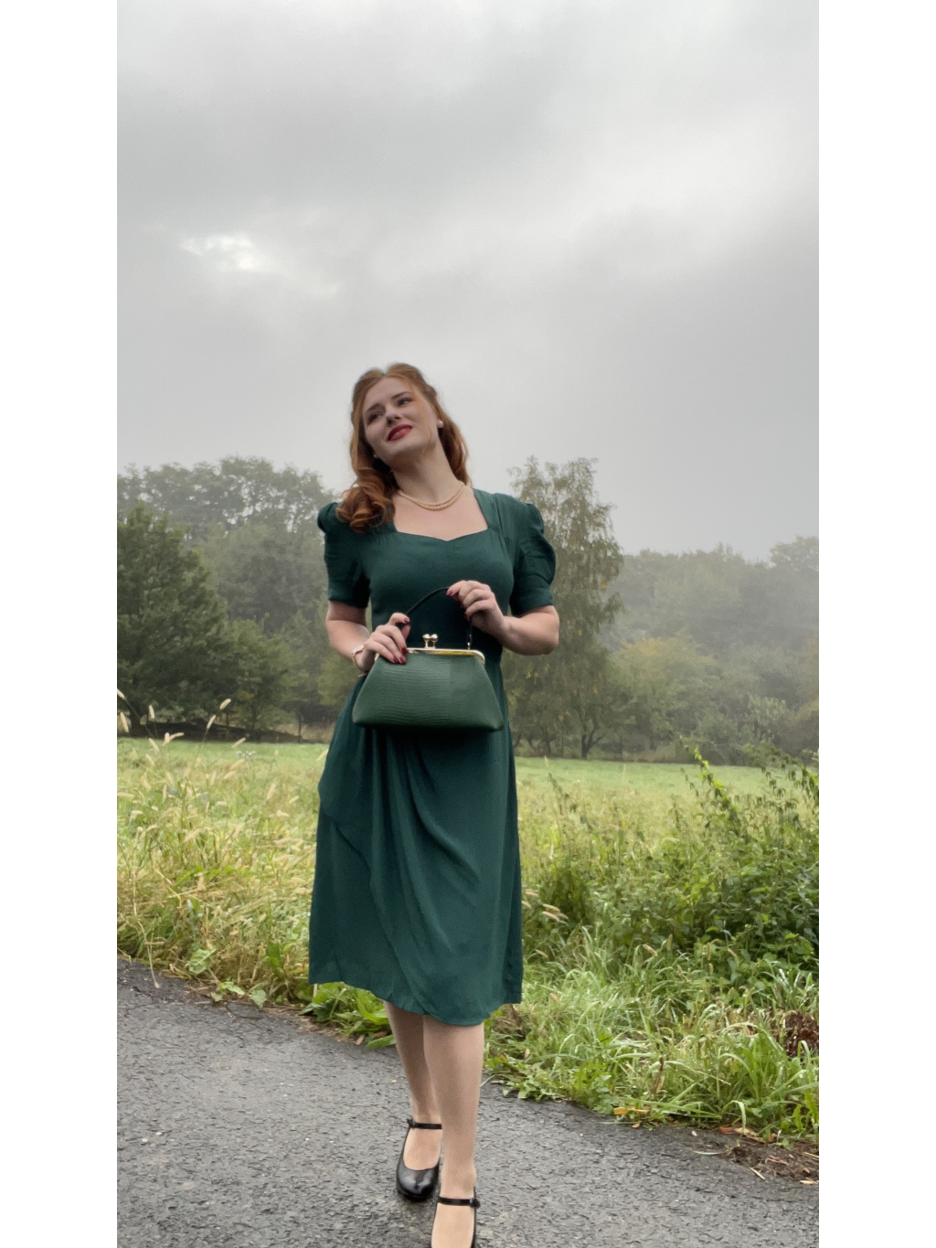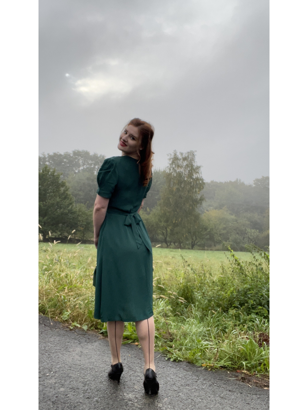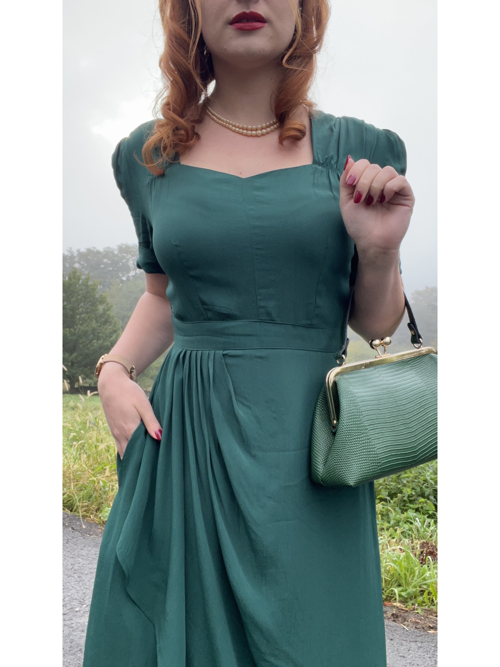 Materiał krepdeżyn, z którego wykonany jest ten element, to wierna imitacja tkaniny z epoki i jest w 100% z naturalnych włókien. Nie musisz się obawiać, że materiał będzie prześwitywał. Producent zaleca pielęgnację tego ubrania tak, jak w latach 40., aby przedłużyć jego trwałość. Jak to zrobić, przeczytasz w tym artykule na moim blogu.
