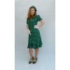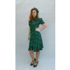 Šaty jako vystřižené z dobového magazínu 40. let. Přesnětakové jsou šaty Lisa v krásné tmavě zelené barvě s nenápadným vzorembílých psíků. Šaty jsou v klasickém košilovém střihu s rozepínacím živůtkem.Rukávy i živůtek jsou doplněny jemným řasením Součástí je pásek ve stejné barvě.Zip se nachází na levém boku. Přiléhavá sukně se postupně rozšiřuje.