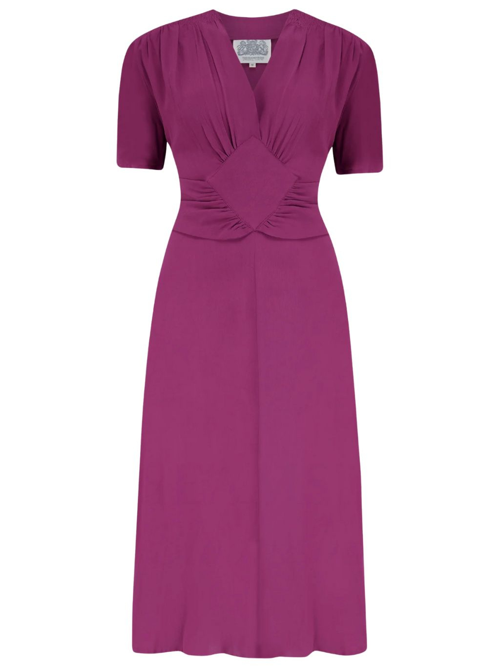 Autentický střih šatů, který Vás přenese do 40. let minulého století, to jsou šaty Ruby v originálním fialovém odstínu, který je ideální pro nadcházející jarní a letní měsíce.