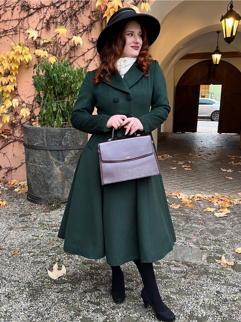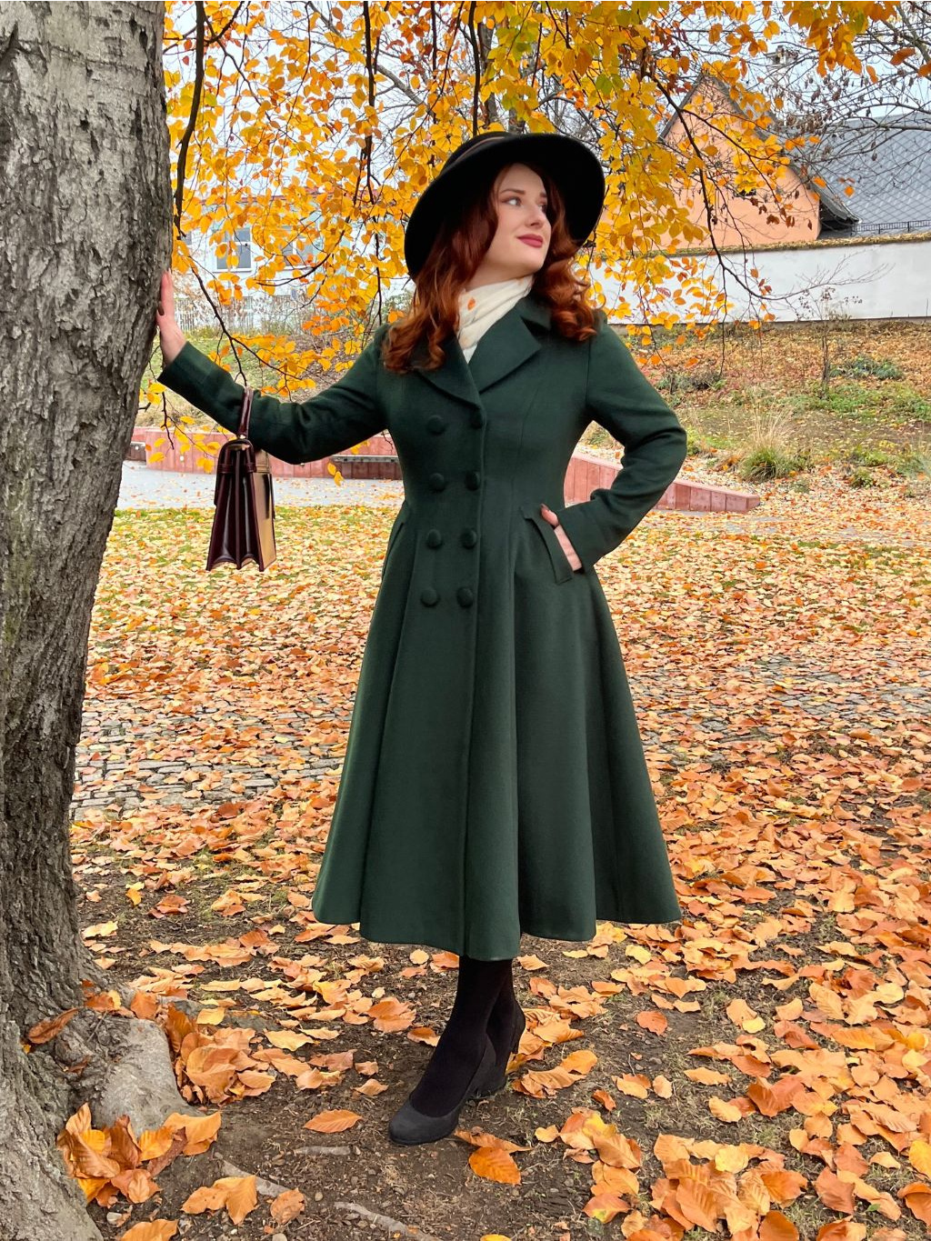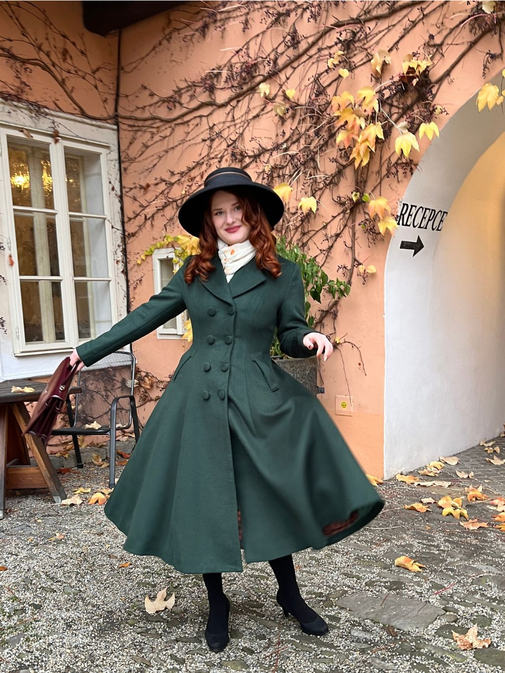 - Krom těchto detailů je celkový střih kabátu velmi lichotivý pro ženskou postavu a vlezla se mi pod něj i objemná spodnička. S tou samozřejmě vypadá nejúchvatněji.