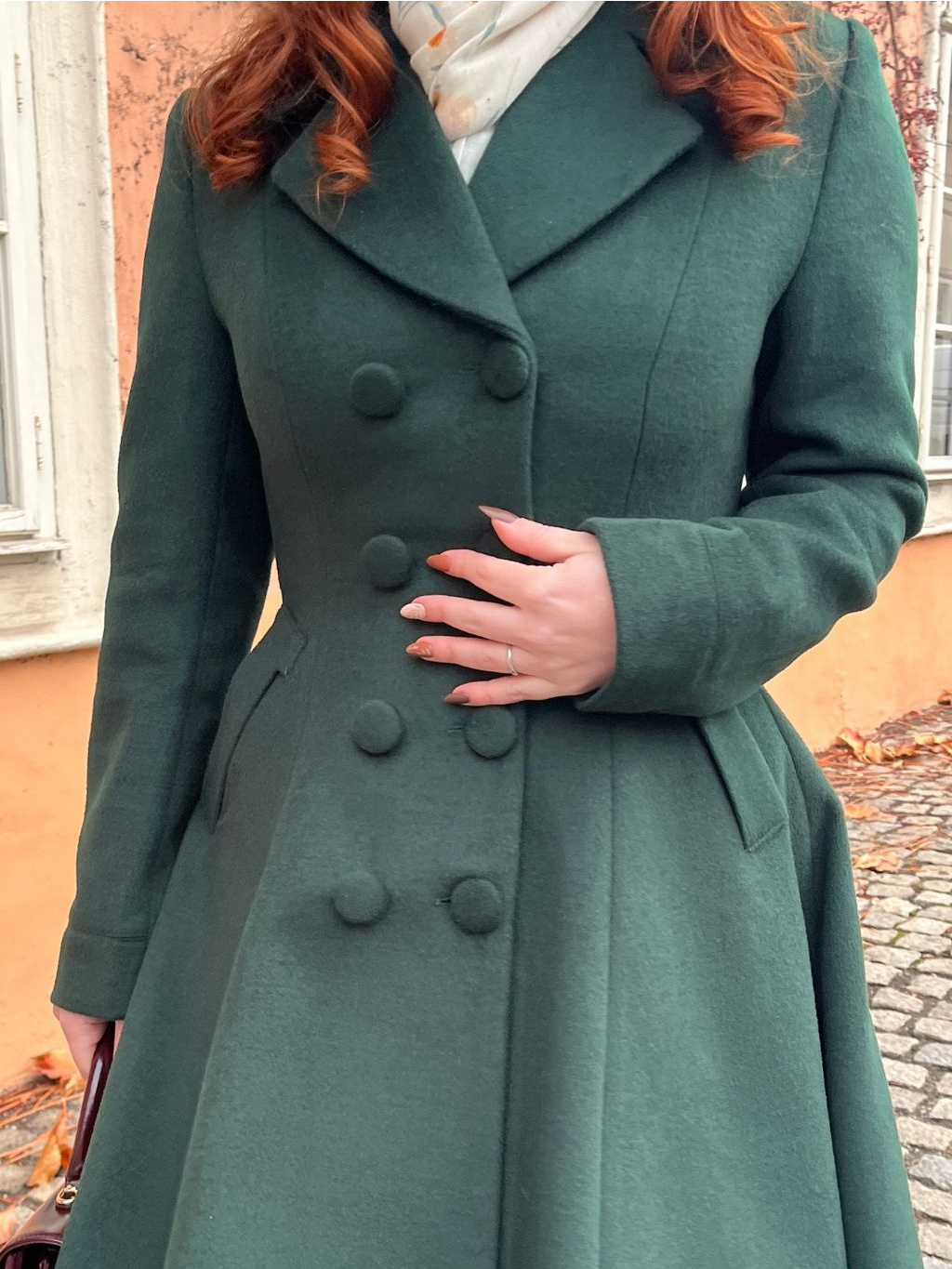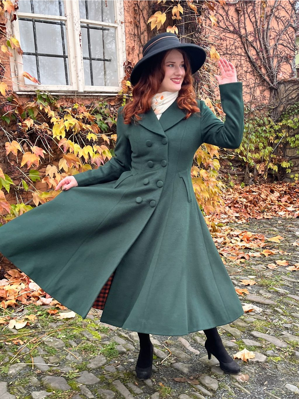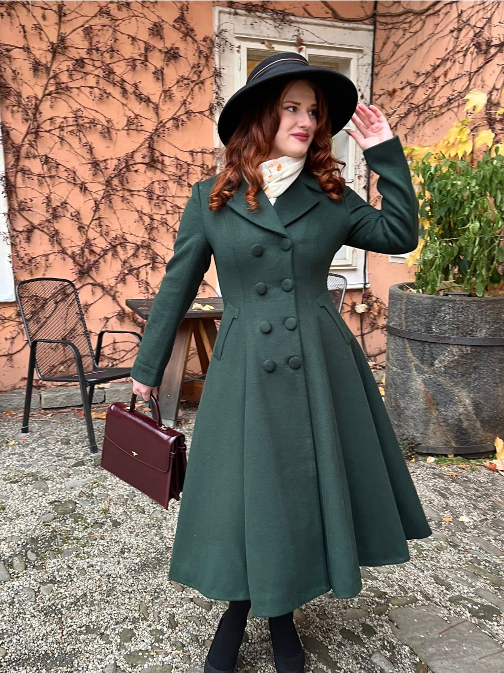 - Krom těchto detailů je celkový střih kabátu velmi lichotivý pro ženskou postavu a vlezla se mi pod něj i objemná spodnička. S tou samozřejmě vypadá nejúchvatněji.