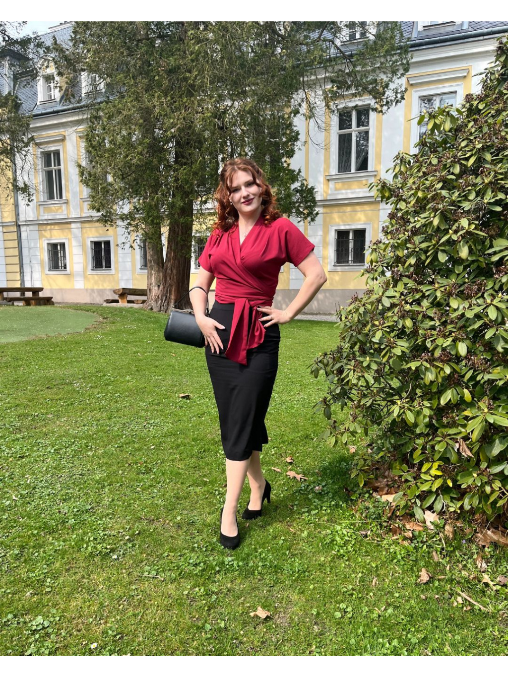 Pokud máte jeden z těch dní, kdy stojíte před otevřenou skříní a vůbec nevíte, co na sebe, halenka Darla Vám 100% zachrání. Skvěle se kombinuje a díky její variabilitě a možnosti přizpůsobit ve velké míře velikost době na míru, se bude hodit i ve dnech, kdy se necítíte být ve své kůži. Protože co si budeme, my ženy to nemáme jednoduché, hledáme praktičnost, pohodlí, ale i krásný vzhled zároveň, a to během všech fází, které nás v průběhu měsíce čekají. Pokud se v tom poznáváte, halenka Darla na Vás už čeká. Já si ji naprosto zamilovala.