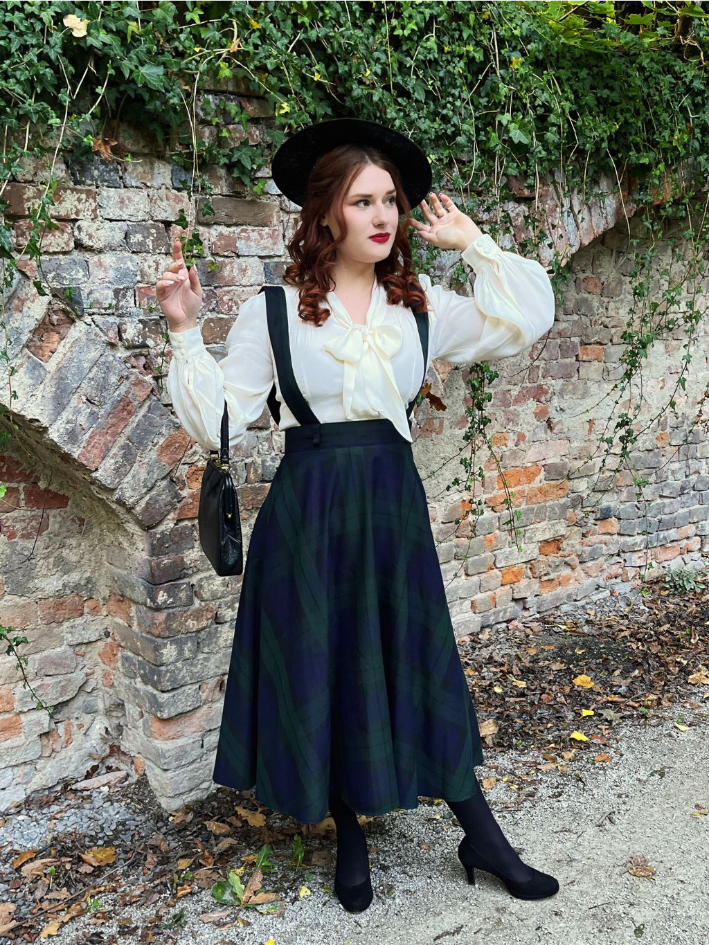 Pod sukní skvěle vyniknou spodničky od značky What Katie Did, které najdete i v mém e-shopu. Kdo miluje variabilitu, ocení, že tento model se hodí jak k elegantním lodičkám a silonkám, tak k teplým punčochám a kotníkovým kozačkám.